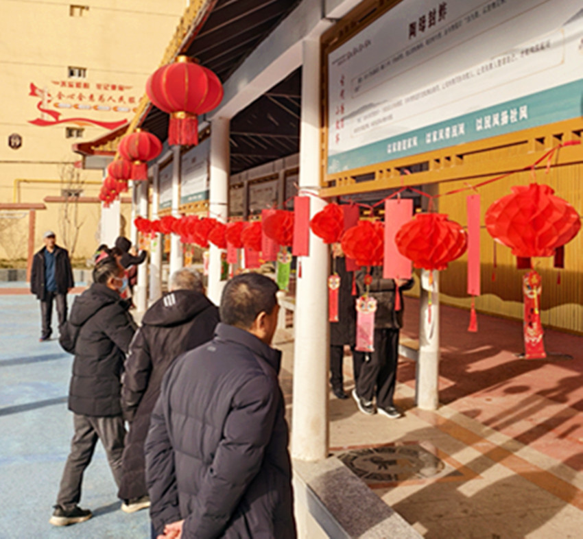 現(xiàn)場(chǎng)布置得喜慶而富有傳統(tǒng)文化韻味,紅燈籠高高掛起,各式各樣的燈謎卡片隨風(fēng)輕擺,營(yíng)造出濃厚的節(jié)日氛圍?;顒?dòng)還未正式開始,就有不少住戶迫不及待地聚集在燈謎區(qū),躍躍欲試,準(zhǔn)備一展自己的聰明才智。