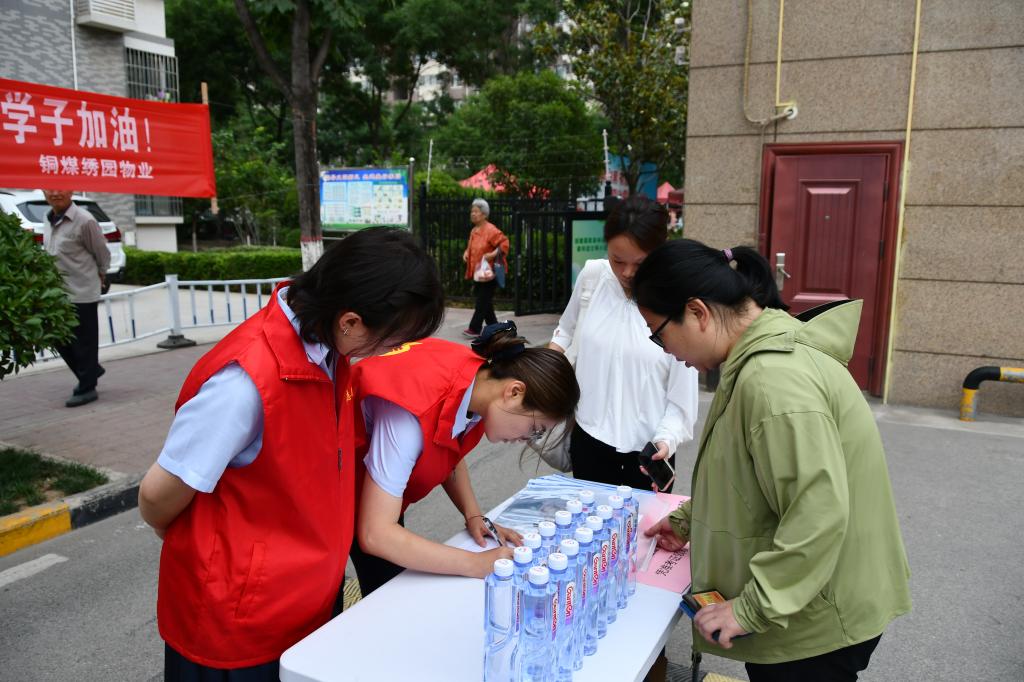 紅色愛心驛站,細(xì)節(jié)蘊(yùn)聚溫情。高考不僅是知識(shí)的比拼,更是心態(tài)的較量。銅煤繡園物業(yè)的志愿者在一、二號(hào)小區(qū)門口分別設(shè)置愛心助力服務(wù)驛站,免費(fèi)為考生及家長(zhǎng)提供應(yīng)急文具(2B鉛筆、橡皮、簽字筆)、瓶裝水、防暑降溫藥品(風(fēng)油精、藿香正氣水)、口罩、紙巾等,以備考生不時(shí)之需。