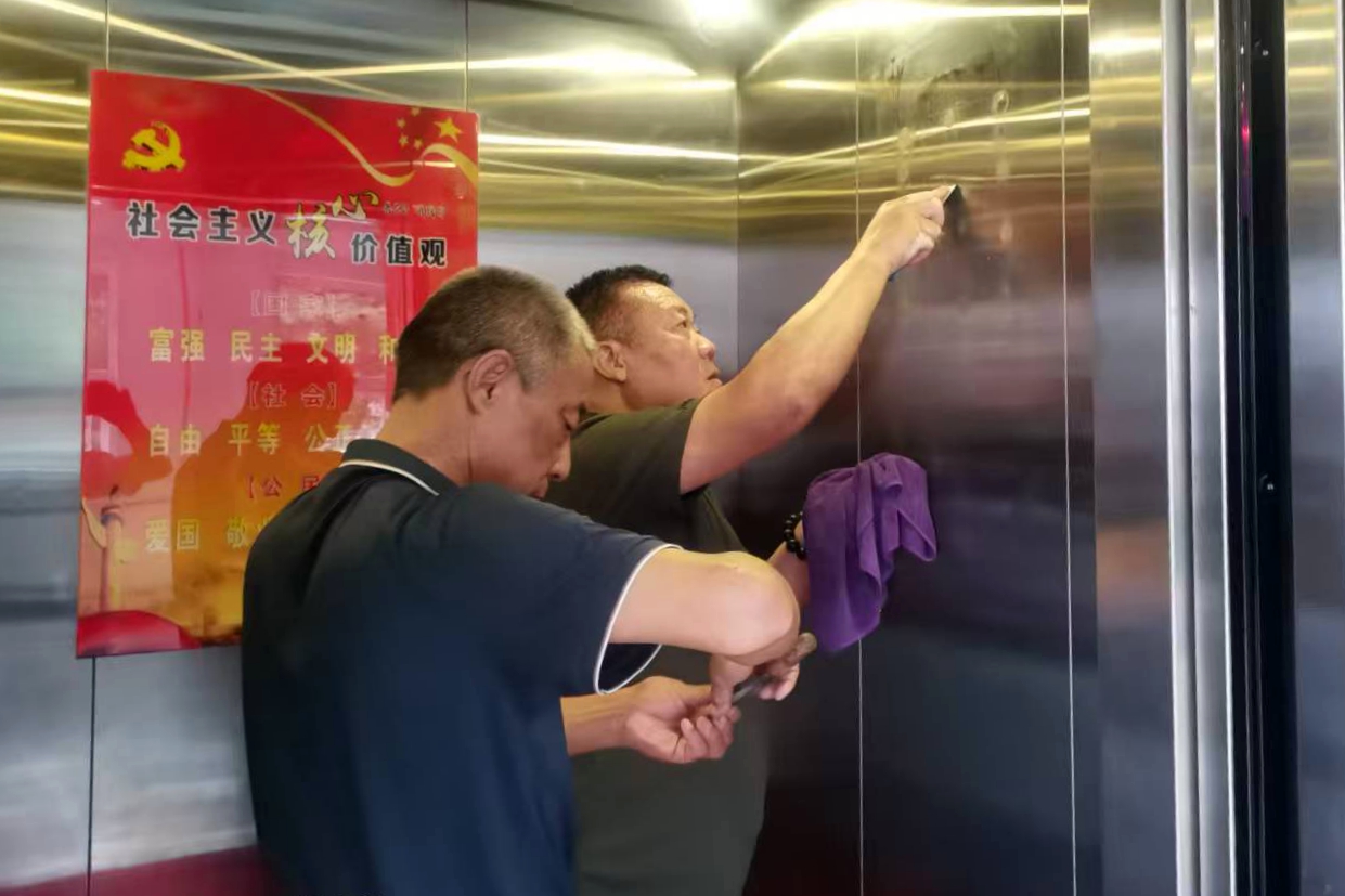 此次整治行動以“不留死角、不走過場”為原則,聚焦日常工作中最關(guān)注的環(huán)境問題精準(zhǔn)發(fā)力,對走廊地面進(jìn)行深度清潔,鏟除頑固污漬;對墻面張貼的過期通知、膠帶痕跡逐一清理,還原整潔原貌;對電梯轎廂進(jìn)行消毒擦拭,更換老化按鍵保護(hù)膜,讓高頻使用的“移動空間”更顯清爽。