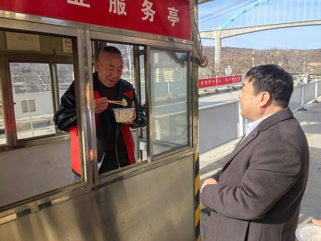餃子一出鍋,社區(qū)領(lǐng)導(dǎo)班子便帶著熱餃子,依次前往門(mén)房值班室、收費(fèi)室、衛(wèi)生保潔等崗位進(jìn)行慰問(wèn)?!岸恋搅?,天氣冷,快趁熱吃碗餃子暖暖身子!”在門(mén)崗值班室,書(shū)記親手將一碗熱氣騰騰的餃子遞到安保大叔手中,還細(xì)心地叮囑道,“晝夜溫差較大,值守的時(shí)候一定要多穿點(diǎn),注意保暖?!痹诒崋T的工作崗位上,社區(qū)領(lǐng)導(dǎo)班子與大家親切交談,細(xì)細(xì)詢(xún)問(wèn)日常工作時(shí)長(zhǎng)、防寒保暖措施是否到位,對(duì)他們?nèi)諒?fù)一日維護(hù)社區(qū)環(huán)境整潔的付出表示誠(chéng)摯感謝。