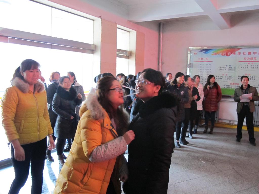 (張蓮娜報道)3月7日上午,社管中心樓前歡聲笑語,熱鬧非凡,社區(qū)40多名女工在工會的組織下,慶祝自己的節(jié)日。為了搞好“三八”婦女節(jié)慶祝活動,社管中心工會按照節(jié)儉熱鬧的原則,開展了三個興趣娛樂活動,吸管運(yùn)輸、搶板凳和雙人背氣球,活動采取分組淘汰制,大家爭先恐后的圍著板凳繞圈,隨著鼓槌敲擊聲,未搶坐上板凳的隊(duì)員自然淘汰,雙人背球比賽將這次活動引上了高潮,每兩人為一組,背靠背夾著氣球跑,這是賦有團(tuán)隊(duì)協(xié)作精神的一項(xiàng)活動,如果不默契,氣球就會掉下來,活動就告失敗,吸管運(yùn)輸也要相互配合,保持一致,由一個隊(duì)員口中叼一個吸管、吸管上放著一個鑰匙環(huán),在行進(jìn)中,鑰匙環(huán)不能掉落,下一個隊(duì)員同樣口含吸管進(jìn)行接力傳遞。大家在高興歡樂中慶祝“三八”婦女節(jié)。
