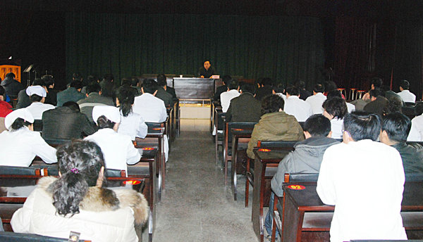 12月19日下午,銅川礦務(wù)局中心醫(yī)院學(xué)習(xí)黨的十八大精神專題報(bào)告會(huì)在院六樓多功能會(huì)議廳舉辦。該院特邀銅川礦業(yè)公司宣傳部部長(zhǎng)李德強(qiáng)為全院干部職工作了學(xué)習(xí)十八大精神專題輔導(dǎo)報(bào)告。該院黨政領(lǐng)導(dǎo)及醫(yī)療、醫(yī)技、機(jī)關(guān)等各科室200余名職工認(rèn)真聆聽(tīng)了此次報(bào)告會(huì)。
