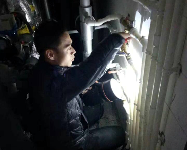 為盡早盡快地完成小區(qū)供暖入戶,繡園小區(qū)全體放棄周末休息時間,冒著嚴(yán)寒,繼續(xù)全力做好供暖工作。晚上22點,維修組郭懷志處理完問題剛回到值班室,又接到報修電話,桃花源有一住戶反映家里暖氣不熱。他放下電話,一路小跑來到住戶家,檢查了閥門,摸了摸管道?!皠e著急,放放氣就好!”郭懷志一邊安慰住戶一邊走進(jìn)廚房,俯下身子擰了擰混水閥上面的排氣閥,過了一會,暖氣慢慢變熱,住戶開心的笑了。臨走前,不忘把供暖注意事項教給住戶。這時已經(jīng)23點了,拖著疲憊的身體回到值班室,這才想起晚飯還沒有吃。當(dāng)天,適逢下雪也到了周末,家住銅川老區(qū)的他原本打算周末陪孩子去渭南參加比賽,但由于工作需要放棄了計劃和休息,依然24小時堅守崗位?!白詮男^(qū)供暖試水開始,我們一直在為小區(qū)供暖備戰(zhàn)著,每天工作十幾個小時,沒有歇過一天班,有時處理一些突發(fā)問題甚至到凌晨兩三點”維修組呂勇如是說。