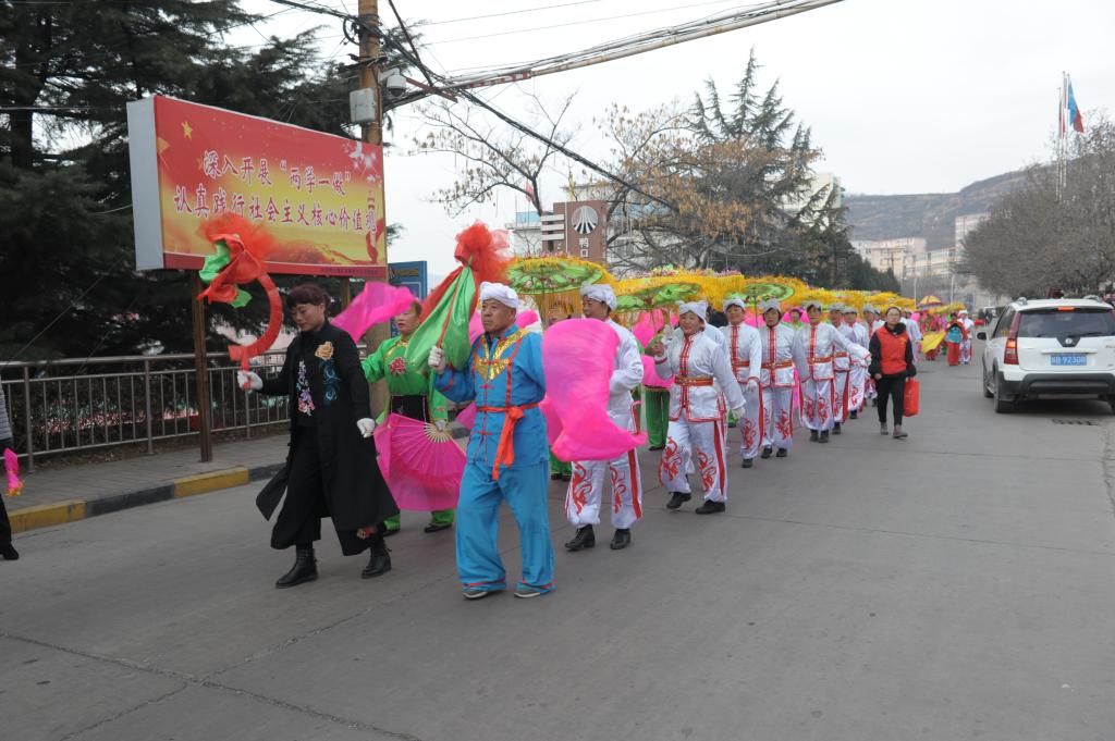 現(xiàn)場,秧歌表演隊員手搖彩扇,腳步輕靈,步調(diào)一致,將秧歌扭得熱火朝天,盡管許多表演隊員已是年過60的老人,但是在歡樂的鼓樂聲中,她們個個多姿多彩、精神抖擻、青春煥發(fā),每個人臉上都洋溢著節(jié)日的喜氣。勾畫出一幅歡樂祥和的鬧新春圖畫。隨后還有男女獨(dú)唱、歌伴舞、相聲等,一個個由礦區(qū)群眾們精心準(zhǔn)備的節(jié)目陸續(xù)登臺上演,不是迎來場外陣陣掌聲,社區(qū)鑼鼓隊的表演更是將活動推向高潮。在辦公樓前,套圈,瞎子敲鑼等活動也在如火如荼的舉辦著。