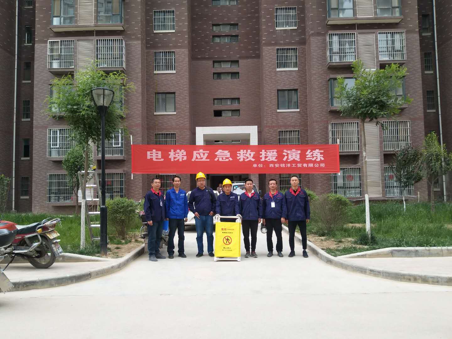 為提升電梯使用管理,增強物業(yè)員工安全管理水平和應(yīng)急救援能力,5月24日上午,華遠項目部繡園社管中心聯(lián)合電梯維保單位─西安銘洋工貿(mào)有限公司相關(guān)工作人員開展了電梯困人應(yīng)急演練。