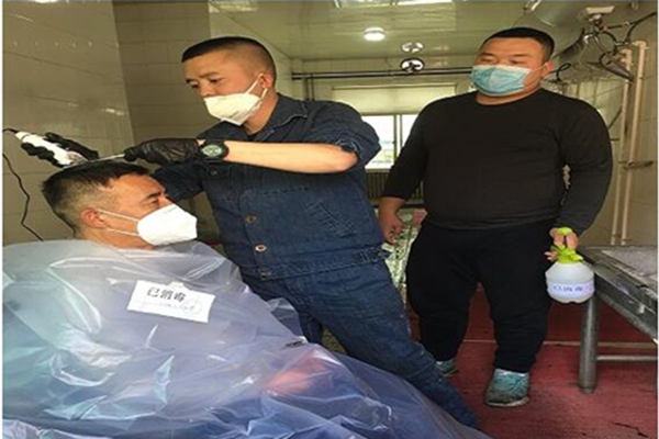 理發(fā)室雖簡陋,但是安全防護工作,做的可是一點都不馬虎。為確保安全,每次理發(fā)前他都做了嚴(yán)格消毒,除了他自己做好防護外,被理發(fā)的同事們同樣嚴(yán)格做到防護,“一個一個理,每個人消毒措施防護措施都要做到位。雖然理發(fā)環(huán)境不如專業(yè)理發(fā)店,但其專業(yè)的手法和精湛的手藝獲得了大家的一致認(rèn)可。大家都紛紛點贊,手動比心,親切地稱呼他“最帥理發(fā)師”。