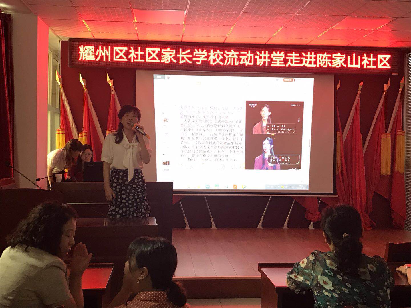 7月30日上午,陳家山社區(qū)攜手耀州區(qū)婦聯(lián)中心組織開展了“家庭教育”活動。全國優(yōu)秀輔導(dǎo)員、耀州區(qū)巾幗家庭教育指導(dǎo)中心講師楊娟給陳家山社區(qū)的居民家長和孩子們上了一堂《做智慧父母 筑幸福家庭》的專題講座。