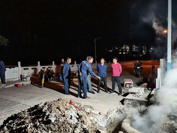 8月21日下午,進入了第二次搶修處理,大家開始挖土、掘溝、鏟石塊、清淤泥、排雜物,因為近期的多雨,搶修期間遇到了許多困難。已經(jīng)到了夜晚,夜深人靜,但是,整個搶修現(xiàn)場卻忙忙碌碌,有的同志顧不得臟、忘掉了累,更沒有叫苦。而是相互配合,守望相助,有的忙著清理雜物,有的鉆到地溝里,有的輸送著工具和配件,有的在查找新的故障和隱患,有的對管道進行焊接處理,有的給大家送水,一個個生動的細節(jié),一個個感動的職工,一個個動人的故事在搶修現(xiàn)場傳遞著、演繹著……