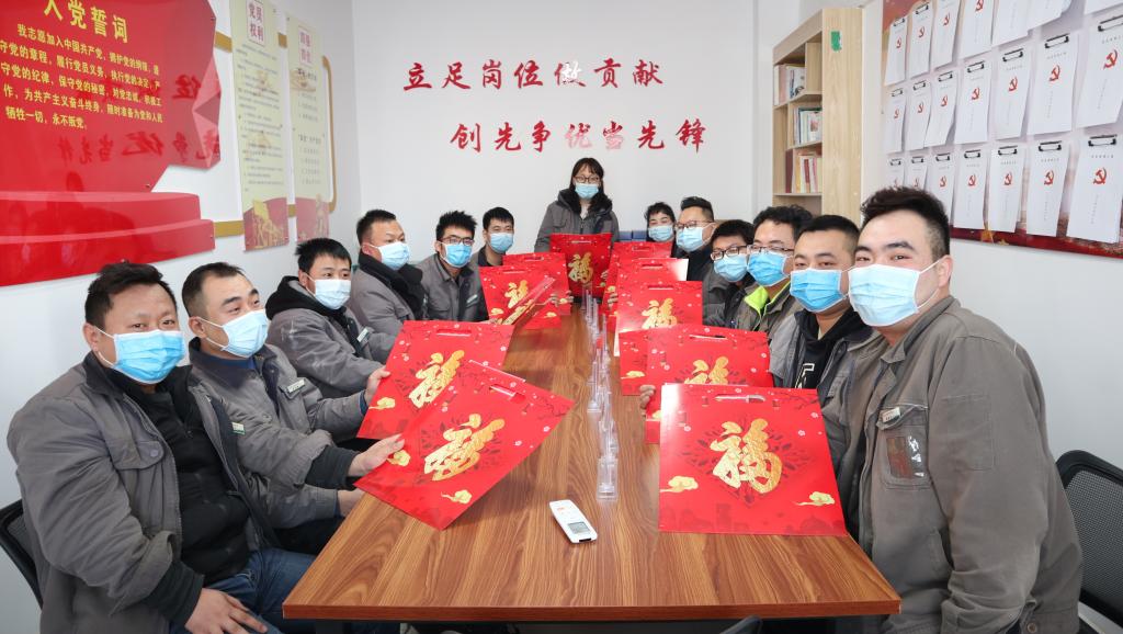 活動當天,按照疫情防控的需要,工會人員首先將春聯(lián)、福字、窗花等放入福袋,并以車間工會為單位進行分配,再由各車間工會主要負責人將福袋送到干部職工手中,讓大家都能夠感受到企業(yè)的關愛同時把企業(yè)的祝福帶回家。