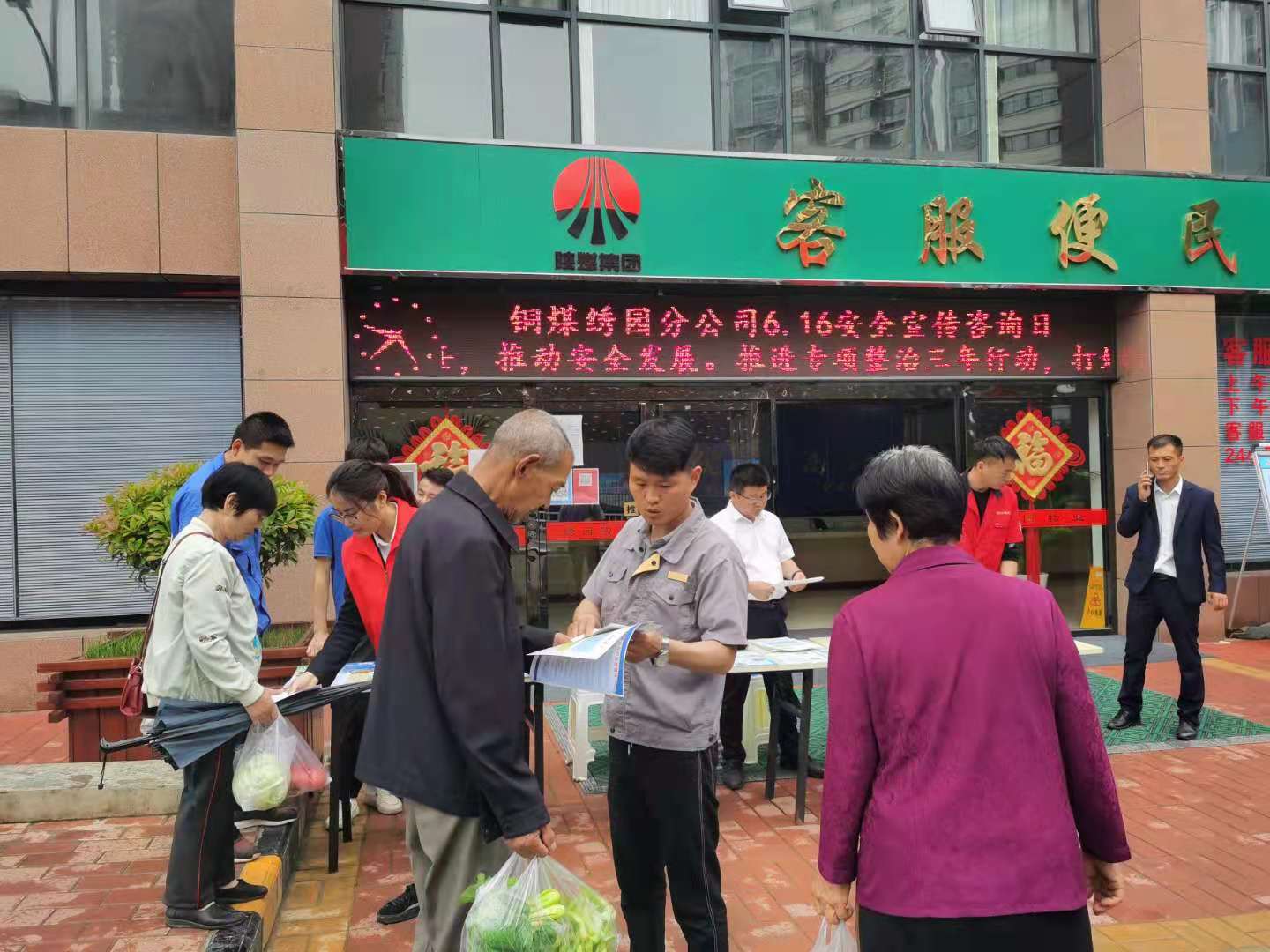 6月16日,繡園管理中心認(rèn)真貫徹“落實安全責(zé)任 推動安全發(fā)展”的安全生產(chǎn)月活動主題,聯(lián)合銅川市天然氣公司、電梯維保公司在客戶服務(wù)大廳門口通過宣傳展板、宣傳海報、宣傳冊向廣大住戶講解宣傳安全用氣、電梯隱患小知識。