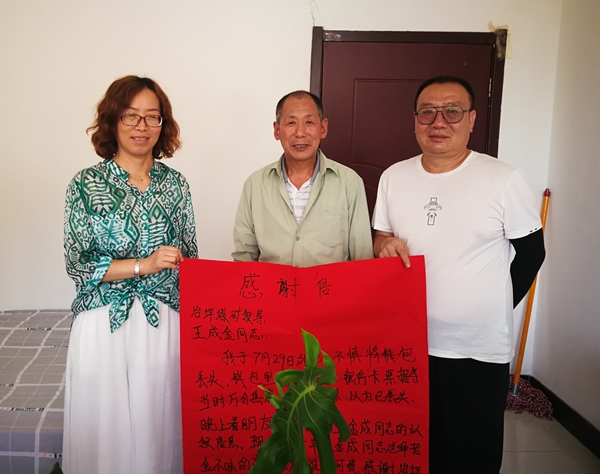 得知這一切,任女士激動萬分,非常感謝王金成。她說,現(xiàn)實(shí)中王金成這種拾金不昧的高貴品質(zhì)難能可貴,自己也是礦工子弟,今天見面格外親切,礦山養(yǎng)育了像王金成這樣的礦山好男兒,他俯下身去拾起的是中華民族傳統(tǒng)美德,送還的是一顆至純至美的心,她同時(shí)感謝微信圈幫轉(zhuǎn)發(fā)信息的好心人。 最后,任女士拿出現(xiàn)金要重謝王金成,被王金成婉言謝絕。