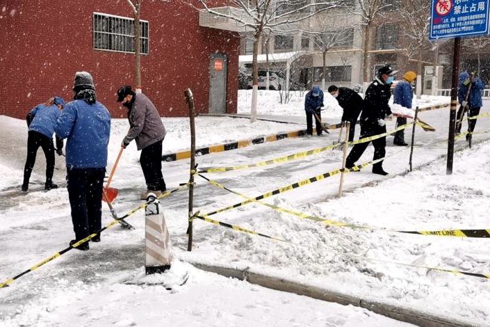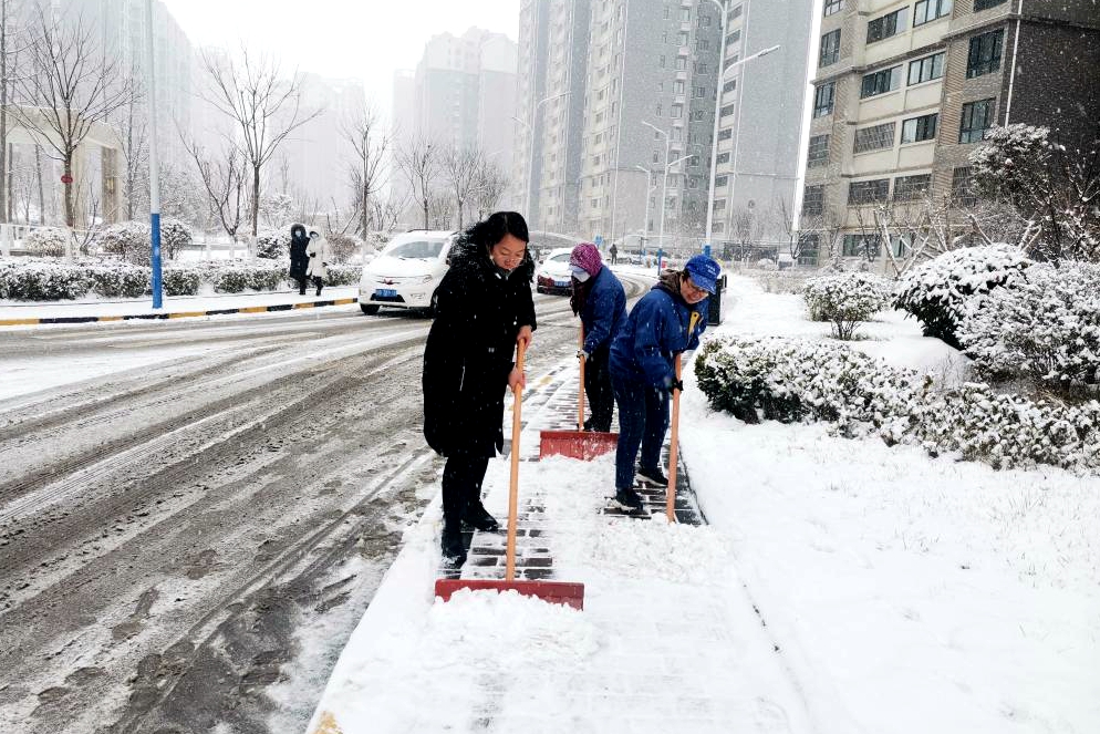 銅煤繡園:別樣雪景!物業(yè)人鏟雪除冰保出行