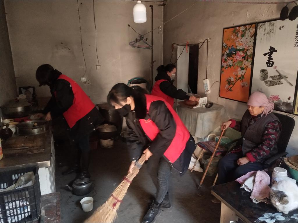 服務(wù)當(dāng)天,志愿者們早早來到獨居老人王奶奶家,按照分工大家各司其職,有的為老人挑水,有的清掃房子、整理家務(wù),期間還與陪老人促膝談心、噓寒問暖、了解老人面臨的困難和需求。