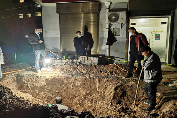 面對(duì)居民公共生活突發(fā)事件,該管理中心工程維修部搶險(xiǎn)隊(duì)員們手中的鐵锨和洋鎬不停的揮舞,汗氣與哈氣交織在一起,人停工具不停,干累了就換人。 直至次日凌晨5點(diǎn),經(jīng)過(guò)15個(gè)小時(shí)的連續(xù)奮戰(zhàn),對(duì)破裂管道進(jìn)行更換修復(fù)。