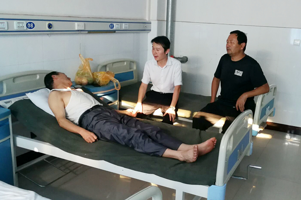 8月5日晚上9時許,魏墻項目部宿舍樓6層13號房間的張書亮躺在自己床上連續(xù)幾個小時過去都是感覺渾身乏力,伴有嘔吐癥狀,甚至不能下地行走,病情一度加重,臨床的幾位工友見狀不斷詢問他,“不行去醫(yī)院檢查檢查,”可他總一口回絕“沒事,躺一會就好了”就在這時,返礦剛回來的項目部副經理滕建德正好路過見此病情嚴重,耽擱不得,于是,二話沒說立即聯(lián)系好車輛,隨后找來同住的幾個工友朱比印、張軍澤、王西鋒一同攙扶著張書亮送上車趕往醫(yī)院,并為張書亮先后墊付了部分醫(yī)藥費,進一步讓病情得到了有效控制,同時,將張書亮病情及時反饋給項目部。