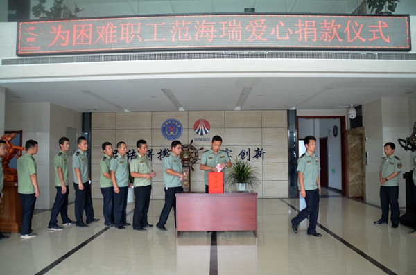7月18日下午,救護(hù)大隊(duì)工會(huì)組織全隊(duì)干部職工發(fā)揚(yáng)“一方有難、八方支援”的友愛互助精神,在大隊(duì)辦公樓為患癌困難職工范海瑞同志舉行愛心捐款儀式。