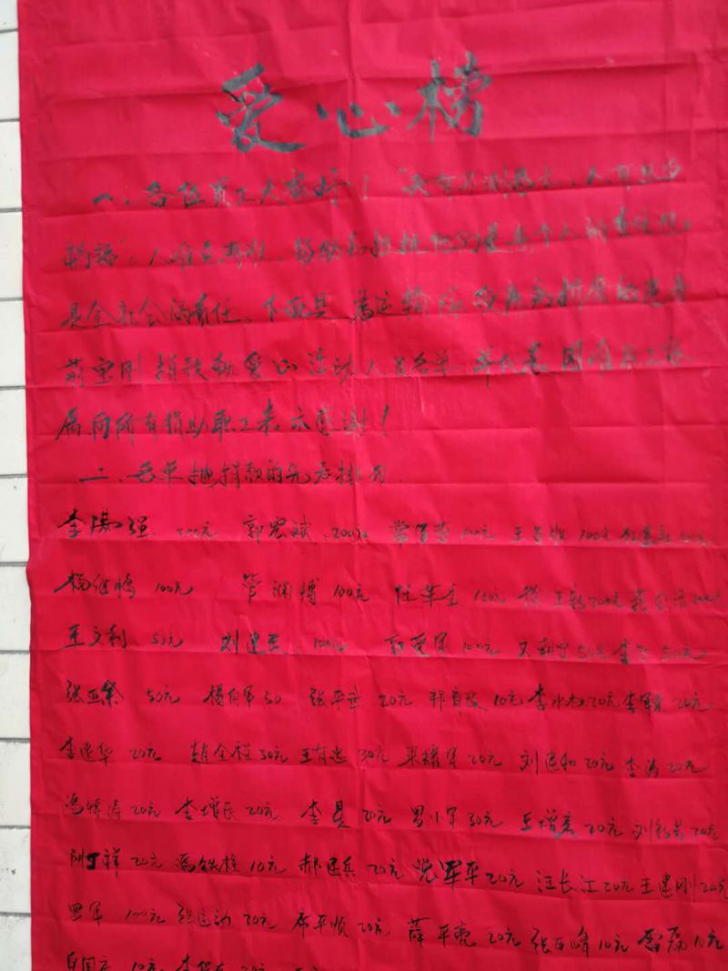 荊寶剛是運輸隊一名員工,身患重病住進(jìn)西安某大醫(yī)院。荊寶剛家境貧寒,僅靠微薄工資維持生計,住院花費大量費用。運輸隊領(lǐng)導(dǎo)得知此事后,在區(qū)隊班前會上向干部職工講明荊寶剛的病情和困境,發(fā)出倡議,號召大家捐款獻(xiàn)愛心。黨支部書記郭宏斌、隊長李滿強帶頭捐款200元,其他干部、生產(chǎn)班長你100元,他50元,慷慨相助。職工們踴躍捐款,10元、20元,奉獻(xiàn)愛心。短短幾天時間,干群捐款3000多元。其中,職工徐宇新 、范公杰捐款200元;任革委捐款100元,他們說,經(jīng)常受到大家的幫助,這是一點心意。