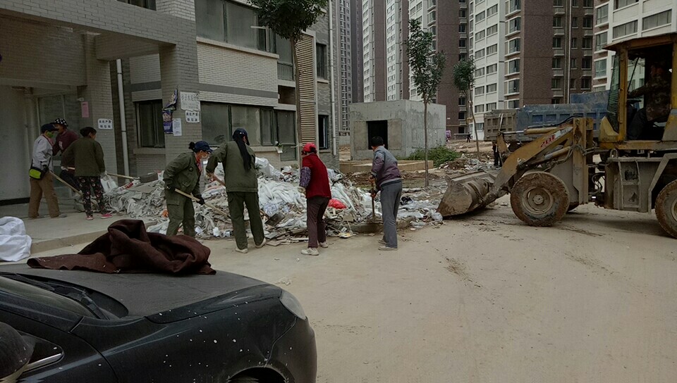 “清”:小區(qū)全體干部職工齊動(dòng)手,每周抽出固定時(shí)間共同清理樓宇前后的垃圾,現(xiàn)共清理建筑垃圾近50噸。并組織人員對(duì)垃圾臺(tái)、未綠化的草坪進(jìn)行圍擋遮蓋,有效的阻止了塵土的飛揚(yáng),改產(chǎn)了小區(qū)“臟亂差”的局面。