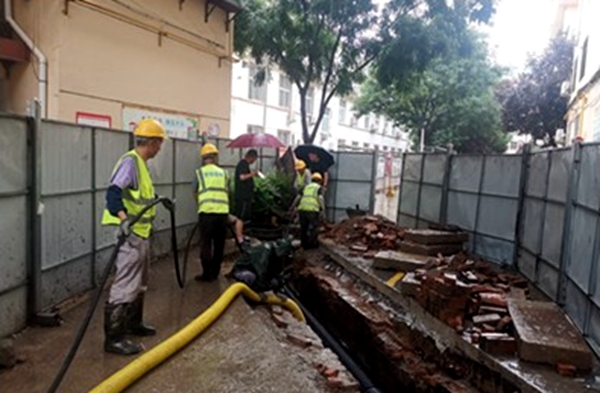 一場暴雨,突如來襲,給世錦園林在建工程工地溝道管網造成極大威脅,地下輸水管網因淤泥長期堆積,造成臨時開挖管溝積水。