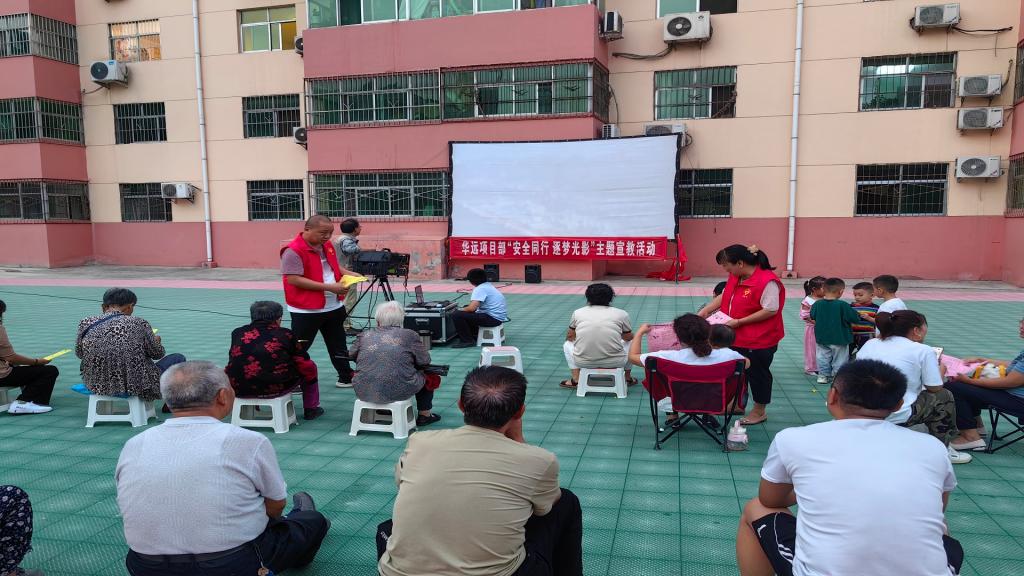 9月7日晚,華遠(yuǎn)項(xiàng)目部“安全同行 逐夢(mèng)光影”主題影視電影宣教活動(dòng)在川口分部管理中心飛龍小區(qū)上映。