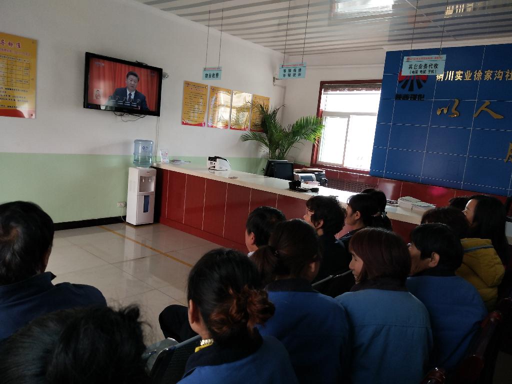 10月18日上午,舉世矚目的中國共產(chǎn)黨第十九次全國代表大會在北京人民大會堂隆重開幕。徐家溝礦區(qū)內(nèi)彩旗飄揚,鑼鼓喧天,處處洋溢著濃郁的喜慶氛圍?!盁崃覒c祝黨的十九大勝利召開”、“喜迎黨的十九大不忘初心跟黨走”等橫幅懸掛在礦區(qū)各處,徐家溝便民客服中心圍坐了前來收看十九大盛況的社區(qū)職工40余名,大家滿懷喜悅收看黨的十九大開幕會直播。