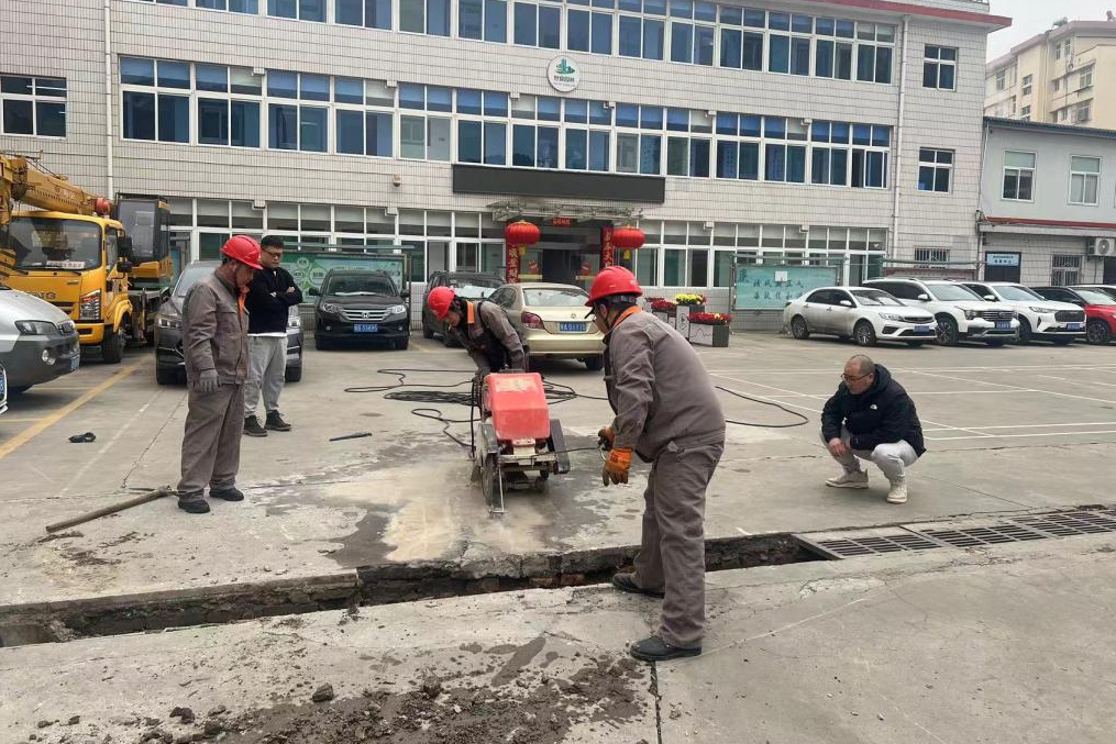 在節(jié)后日常檢查巡查中,發(fā)現(xiàn)因車輛長(zhǎng)期碾壓,導(dǎo)致辦公院內(nèi)排水管網(wǎng)周邊裂紋、塌陷,鑄鐵過濾篩也錯(cuò)位、高低參差不齊,嚴(yán)重影響大型施工車輛和行人出行安全,針對(duì)這一隱患,工程部召集人員及時(shí)“會(huì)診”制定搶修具體方案,技術(shù)人員現(xiàn)場(chǎng)勘查,做好施工現(xiàn)場(chǎng)安全監(jiān)管和安全技術(shù)交底,嚴(yán)把施工安全和工程質(zhì)量關(guān)口,針對(duì)實(shí)際使用的長(zhǎng)期性、堅(jiān)固性,確定在車輛出行的主要路面采取鋪設(shè)波紋管、夯實(shí)基礎(chǔ)、回填土層、重新鋼筋混凝土鋪設(shè)抹平,該中心明確各自分工、破基礎(chǔ)、運(yùn)輸材料、綁扎鋼筋基礎(chǔ)框架、調(diào)和水泥、沙子、石渣混凝土、填埋波紋管、回填溝道,以十足干勁為確保大型車輛出入和人員出行安全夯實(shí)基礎(chǔ)。
