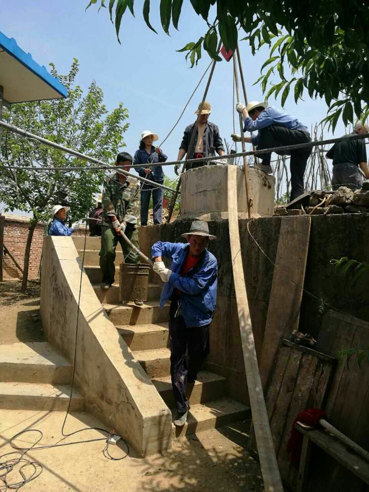 負責清理水源井蓄水池的人員在池口固定安裝鐵柱三角支架和滑輪,通過繩索將水桶捆綁進入蓄水池內部,將池底積存的淤泥盛出,一桶桶傾倒在垃圾清運車里。在蓄水池內積存的淤泥和砂石全部清理干凈后,由專人開著裝滿水的灑水車,對蓄水池進行洗刷,并將洗刷后的污水一桶桶再排出。天氣熱、路途遠,為節(jié)省時間,大家早晨上班時帶上饅頭,中午利用短暫的休息時間吃完自帶的干糧,繼續(xù)投入到清理工作中。雖然每天工作時間長、工作強度大,但沒有人說苦道累。