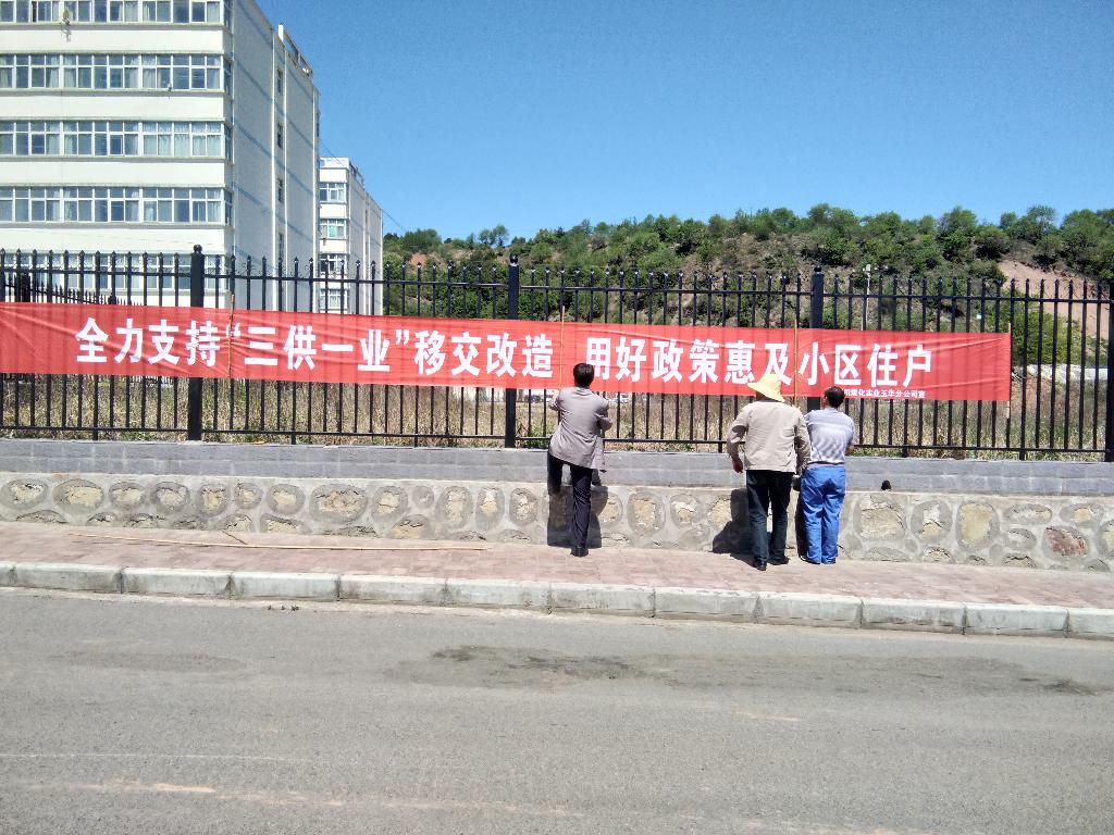 隨著“三供一業(yè)”分離移交相關(guān)工作的不斷推進(jìn),該分公司宣傳工作將一同跟進(jìn),為廣大住戶及職工及時釋疑解惑,確?!叭┮粯I(yè)”分離移交工作順利推進(jìn)。