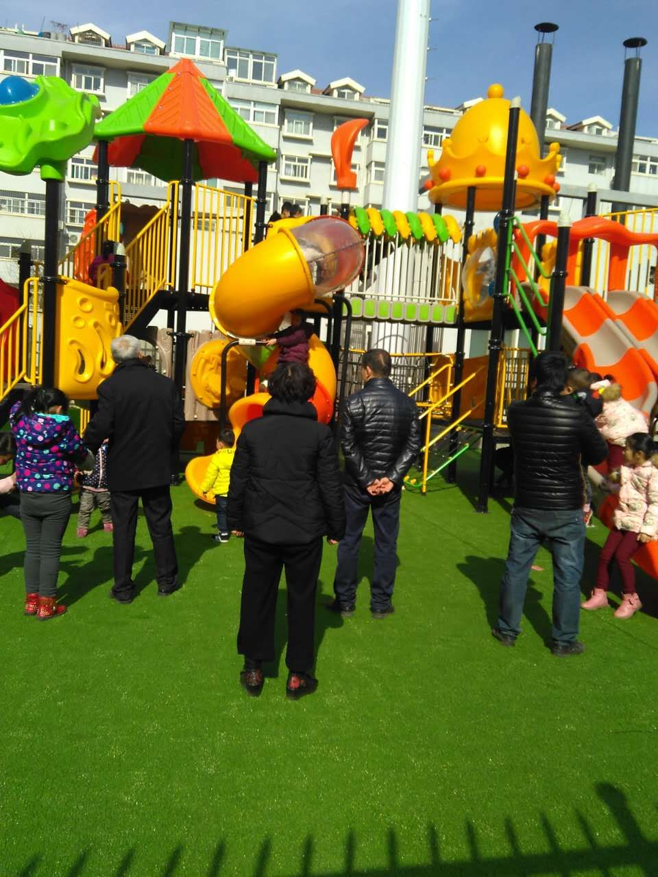 套圈游戲結(jié)束后,物業(yè)工作人員又引領(lǐng)小朋友們?nèi)バ^(qū)內(nèi)剛剛建成完工即將投入使用的實(shí)業(yè)公司新項(xiàng)目----裕豐園南區(qū)幼兒園活動場地游玩,在家長的陪護(hù)下,小朋友們在滑梯上下來回游戲,興高采烈,熱鬧非凡。
