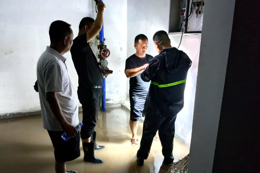 應(yīng)急隊伍迅速集結(jié),手持手電筒、鐵鍬、水泵等工具,冒雨穿梭在小區(qū)的每一個角落。他們首先重點(diǎn)檢查了低洼地帶、地下車庫入口及排水系統(tǒng),發(fā)現(xiàn)積水立即組織排水,確保水流順暢,同時,利用水泵等設(shè)備加速排水進(jìn)程,減少積水對居民生活的影響。