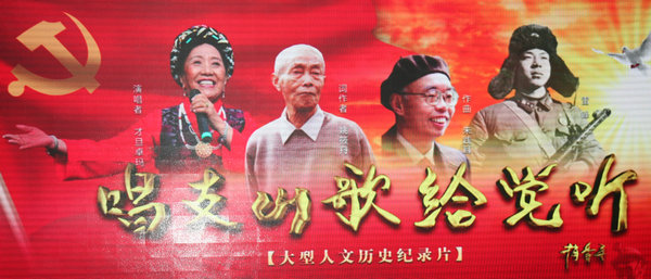 中國共產(chǎn)黨建黨95周年之即,由中國音協(xié)名譽(yù)主席趙季平提寫片名的大型人文歷史紀(jì)錄片《唱支山歌給黨聽》在陜西銅川首映,紀(jì)錄片向觀眾展示了這支著名“山歌”背后鮮為人知的傳奇故事。