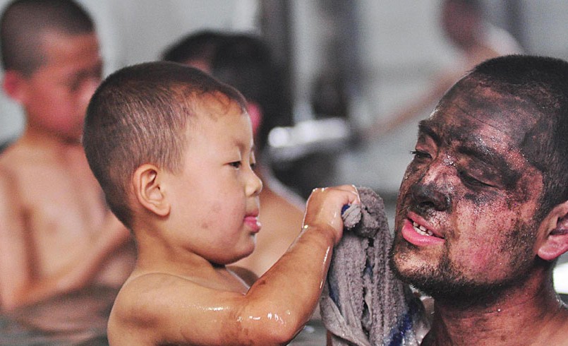 我曾經(jīng)問(wèn)過(guò)父親,下井是做什么呢?父親說(shuō),去挖煤。可他后來(lái)又想了想,用輕松的語(yǔ)氣說(shuō),地下有許多的寶藏,等著我們?nèi)ラ_(kāi)采。也許正是這樣的一個(gè)有些抒情的回答,讓我曾天真地以為,父親的工作就像尋寶一樣輕松。直到有一天,我在醫(yī)院門(mén)口玩耍,突然來(lái)了許多的人,緊接著便是救護(hù)車(chē)、擔(dān)架什么的,現(xiàn)場(chǎng)一片混亂。我在人群中隱約地看到一位像父親一樣穿著黑色工作服,帶著鋼盔帽的人,鮮血滴在通往醫(yī)院的路上,其間還伴著散落的煤灰。我瘋了似地跑回家,當(dāng)我推開(kāi)門(mén)看到父親的那一刻,居然撲在他懷里哭了。那一年,我5歲。