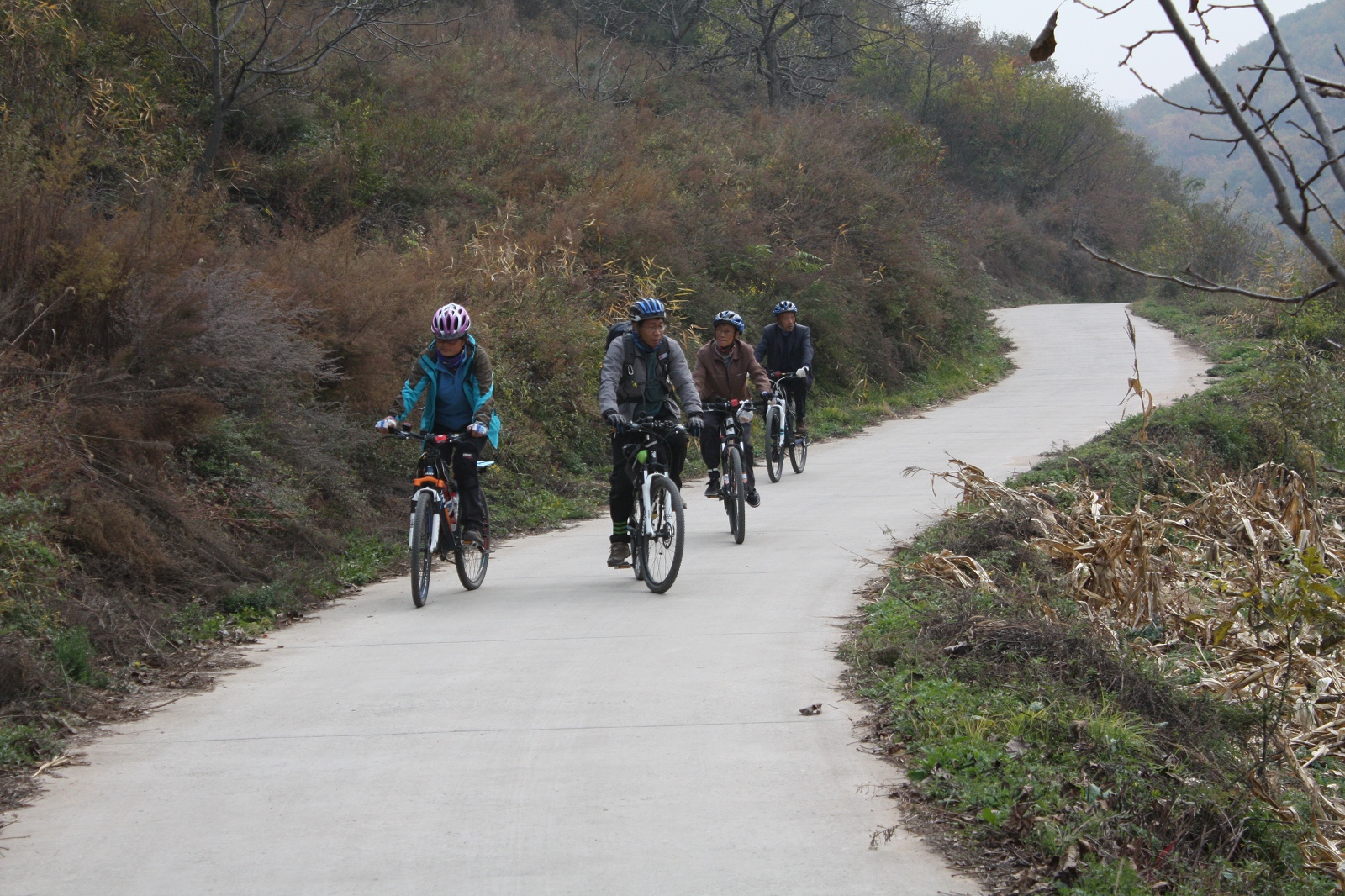 周六早晨八點許,八個驢友相約騎行云夢山。仲秋時節(jié),大概是受霧霾影響,天干霧騰,空氣通透不是太好,但總比窩在蝸居里好多了。秋高氣爽,適宜騎行,大家你追我趕,不甘示后,結(jié)果,有兩個驢友像射飛靶的子彈,順著山梁直插而去,我等隨后追趕不見蹤影,無奈拐道下山,當了一回穿山甲、鉆山豹。一路泉水潺潺喜鵲喳喳,跨過小橋飛瀑流水人家,滿耳流行音樂(自帶音響)一路歡歌,舉目“漫山紅遍層林盡染”,美不勝收。