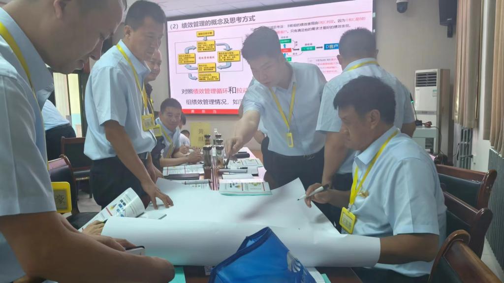 在培訓中,優(yōu)秀的馮海波老師,為我們詳細講解了班組長的八項能力的提升,讓我系統(tǒng)了解了什么是標桿班組、如何打造一支標桿班組、如何做一名優(yōu)秀的金牌班組長等內(nèi)容,并采用師生互動的教學方式,使課堂氣氛活躍,讓大家快樂學習、高效提升。組織各小組開展研討交流,參學成員分享各自平時學習和工作中積累的經(jīng)驗教訓,制作管理模板,大家取長補短,進一步提升管理效能,創(chuàng)新工作方式方法,運用新思路、新想法,充分展現(xiàn)企業(yè)良好形象和個人素質(zhì)能力。