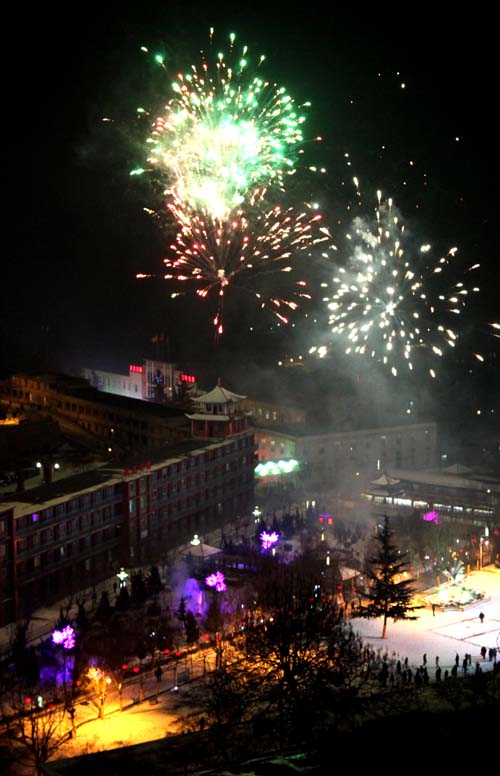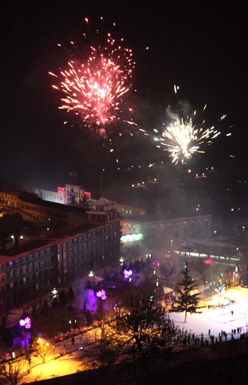 春節(jié)期間,王石凹煤礦在文化廣場燃放煙火,為礦區(qū)節(jié)日文化生活增添了一抹絢麗色彩。
