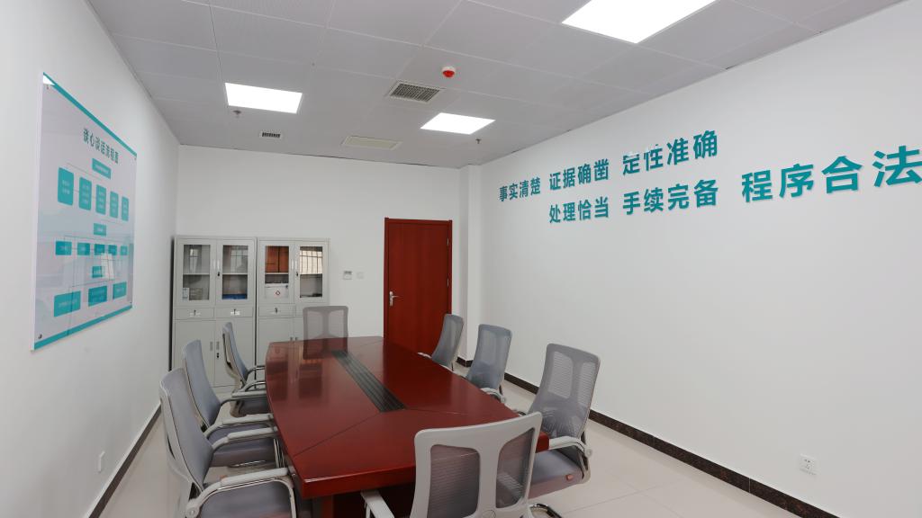 為深入貫徹全面從嚴(yán)治黨要求,進(jìn)一步加強(qiáng)黨風(fēng)廉政建設(shè),近日,公司“同志式”談話(huà)室試運(yùn)行。作為公司反腐倡廉教育陣地“一室、一館、一苑”(“同志式”談話(huà)室、反腐倡廉教育館、清正苑)之一,設(shè)置“同志式”談話(huà)室,是公司紀(jì)委落實(shí)中省紀(jì)委安全辦案要求的重要舉措,也是推進(jìn)“紀(jì)檢監(jiān)察工作規(guī)范化法治化正規(guī)化建設(shè)年”的具體實(shí)踐。室內(nèi)醒目位置張貼問(wèn)題線(xiàn)索處置、監(jiān)督檢查與談心談話(huà)流程,清晰展示監(jiān)督執(zhí)紀(jì)“四種形態(tài)”、辦案人員安全職責(zé)、安全員職責(zé)、“走讀式”談話(huà)交接程序及公司“六個(gè)嚴(yán)禁”等制度規(guī)定,兼具警示性與嚴(yán)肅性,辦公桌椅、電腦等設(shè)施配備齊全,整體布局簡(jiǎn)潔莊重,既營(yíng)造了嚴(yán)肅規(guī)范的談話(huà)氛圍,又傳遞出組織關(guān)懷的溫度。