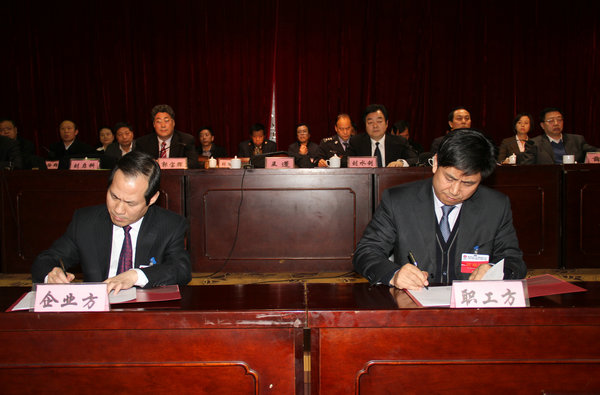 下午16時(shí)30分,公司常務(wù)副總經(jīng)理、安監(jiān)局長(zhǎng)劉水利主持召開第二次全體代表大會(huì)。會(huì)上,企業(yè)方代表與職工方代表簽訂了公司《三個(gè)集體合同》,通報(bào)了民主測(cè)評(píng)結(jié)果,表決通過了大會(huì)決議。