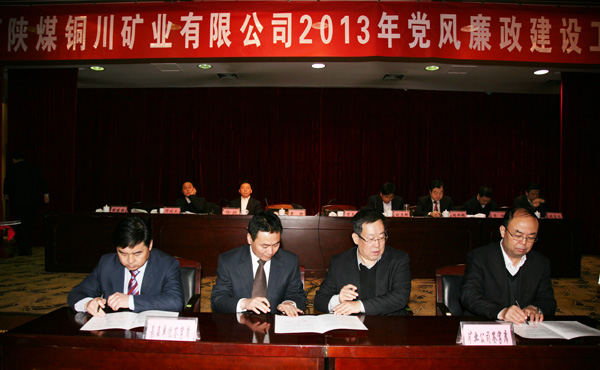 接著,由公司黨委書記黃河、總經(jīng)理宋志剛代表公司黨政,與各基層單位黨政簽訂2013年度黨風(fēng)廉政建設(shè)目標(biāo)責(zé)任書。