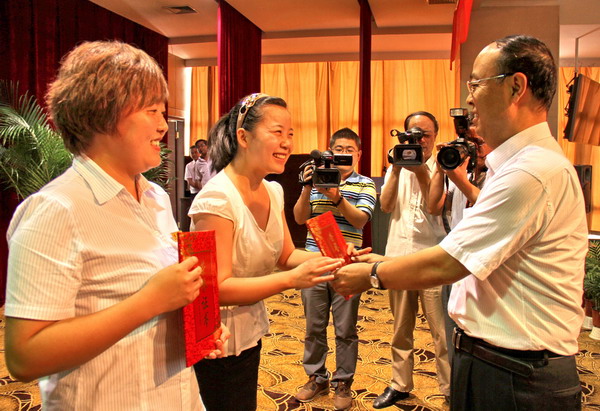 公司黨委書記黃河與一等獎(jiǎng)獲得者合影