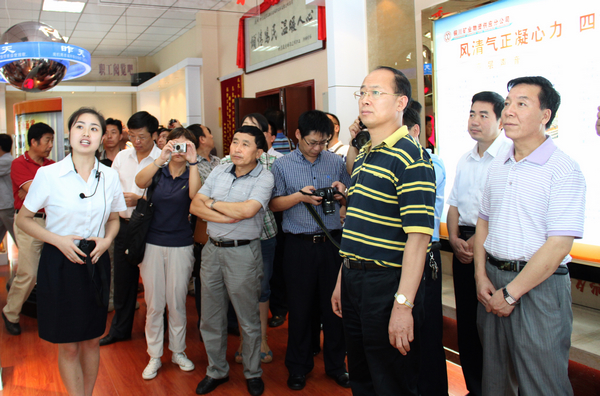 當(dāng)天下午的座談會后,延長石油集團公司紀委副書記、監(jiān)察室主任王清奎等一行,在我公司紀委副書記王發(fā)明、紀委副書記、監(jiān)察室主任陳建斌等陪同下,深入到礦業(yè)公司物資供應(yīng)分公司依次參觀了該單位企業(yè)文化展廳、軍樂隊訓(xùn)練廳、電聲小樂隊、預(yù)備役裝備庫、職工書畫攝影作品展、黨務(wù)公開欄和新和廣場廉潔文化建設(shè)長廊等。次日,又先后深入到下石節(jié)礦和王石凹礦,聽取了兩礦的情況介紹,觀看了廉潔文化建設(shè)形象宣傳片,查看了有關(guān)資料,現(xiàn)場參觀了下石節(jié)礦供應(yīng)科、綜采隊等基層區(qū)隊的廉潔文化建設(shè)、“五精”管理等,還參觀了該礦欣怡文化廣場、職工食堂、礦工俱樂部、職工書畫攝影作品展、礦工會辦公室基礎(chǔ)建設(shè)、廉潔文化教育室、安全警示教育展室、職工閱覽室、單身職工宿舍、井口安全文化長廊、礦燈房、黨務(wù)公開欄和榮譽展室等?,F(xiàn)場參觀了王石凹礦的文化宣傳櫥窗、四項文化建設(shè)、黨務(wù)公開欄、清風(fēng)苑、廉潔文化長廊、職工文化活動中心、和諧園、職工書畫攝影作品展、井口安全文化長廊等。