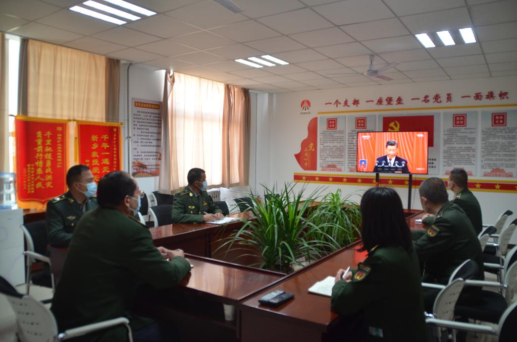 救護(hù)大隊(duì)紀(jì)檢干部觀看黨的二十大開幕式盛況(白紅 提供)