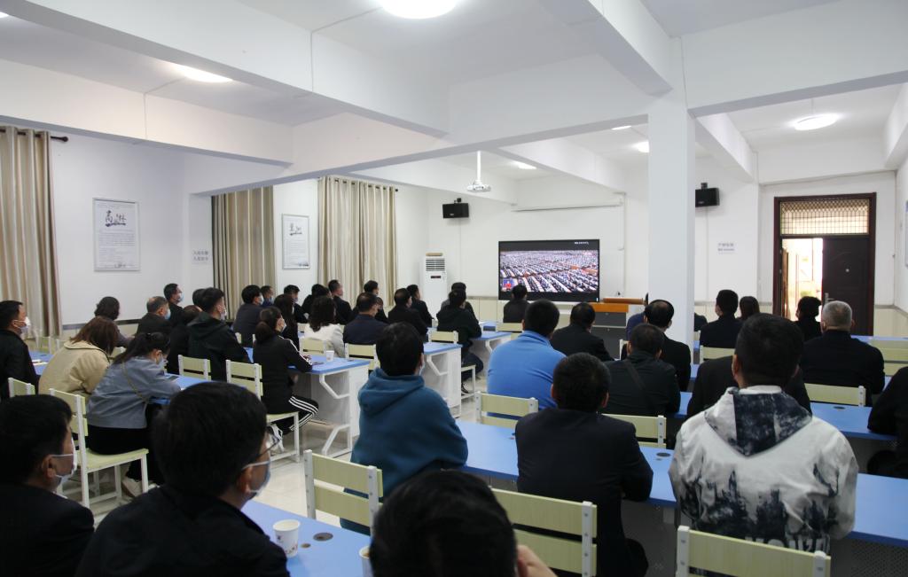 機(jī)電分公司(欣盛煤機(jī))紀(jì)檢干部與黨員干部觀看黨的二十大開幕式盛況(朱俊 提供)