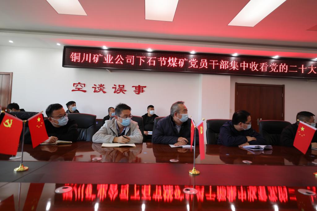下石節(jié)煤礦紀(jì)檢干部與礦黨員干部收看黨的二十大開幕盛況(白天明 提供)