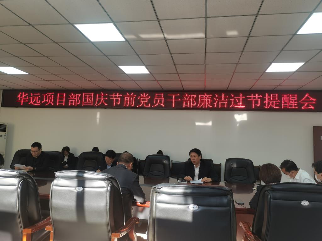 國(guó)慶假期將至,華遠(yuǎn)項(xiàng)目部召開(kāi)國(guó)慶節(jié)前黨員干部廉潔過(guò)節(jié)提醒會(huì),為全體黨員干部送上了一份“廉禮”。