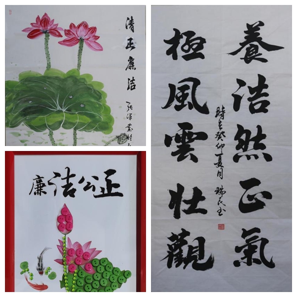 活動中,礦井職工各顯神通,有的寫書法,有的做手工,有的畫水墨畫。“養(yǎng)浩然正氣 極風(fēng)云大觀 ”,“廉潔公正”。共征集主題鮮明、富有創(chuàng)意作品50余幅。通過發(fā)現(xiàn)“廉文化”,贊美“廉文化”,弘揚(yáng)“廉文化”,從不同維度表達(dá)、傳播“廉為榮,貪為恥”的廉潔理念,展現(xiàn)了新時(shí)代崇廉尚潔、健康向上的精神風(fēng)貌。