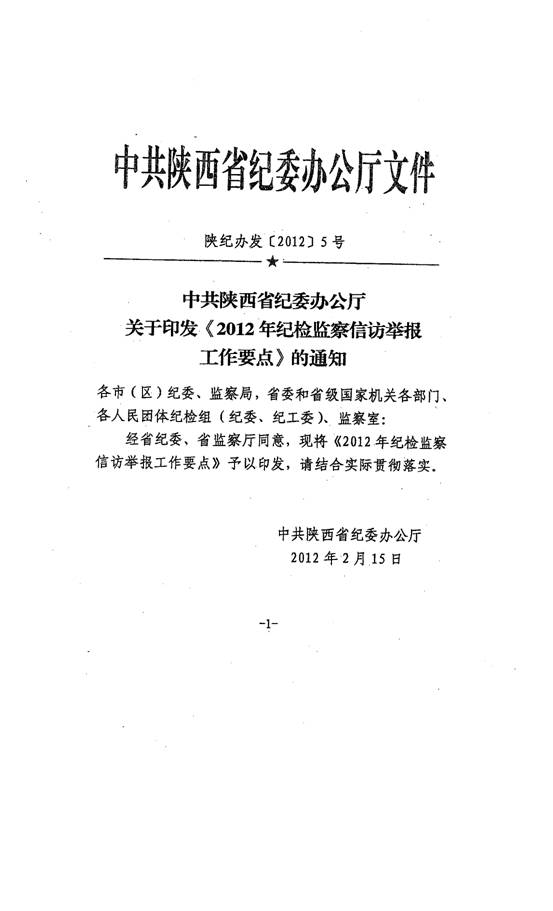中共陜西陜煤銅川礦業(yè)有限公司紀(jì)律檢查委員會關(guān)于轉(zhuǎn)發(fā)《2012年紀(jì)檢監(jiān)察信訪舉報工作要點》的通知