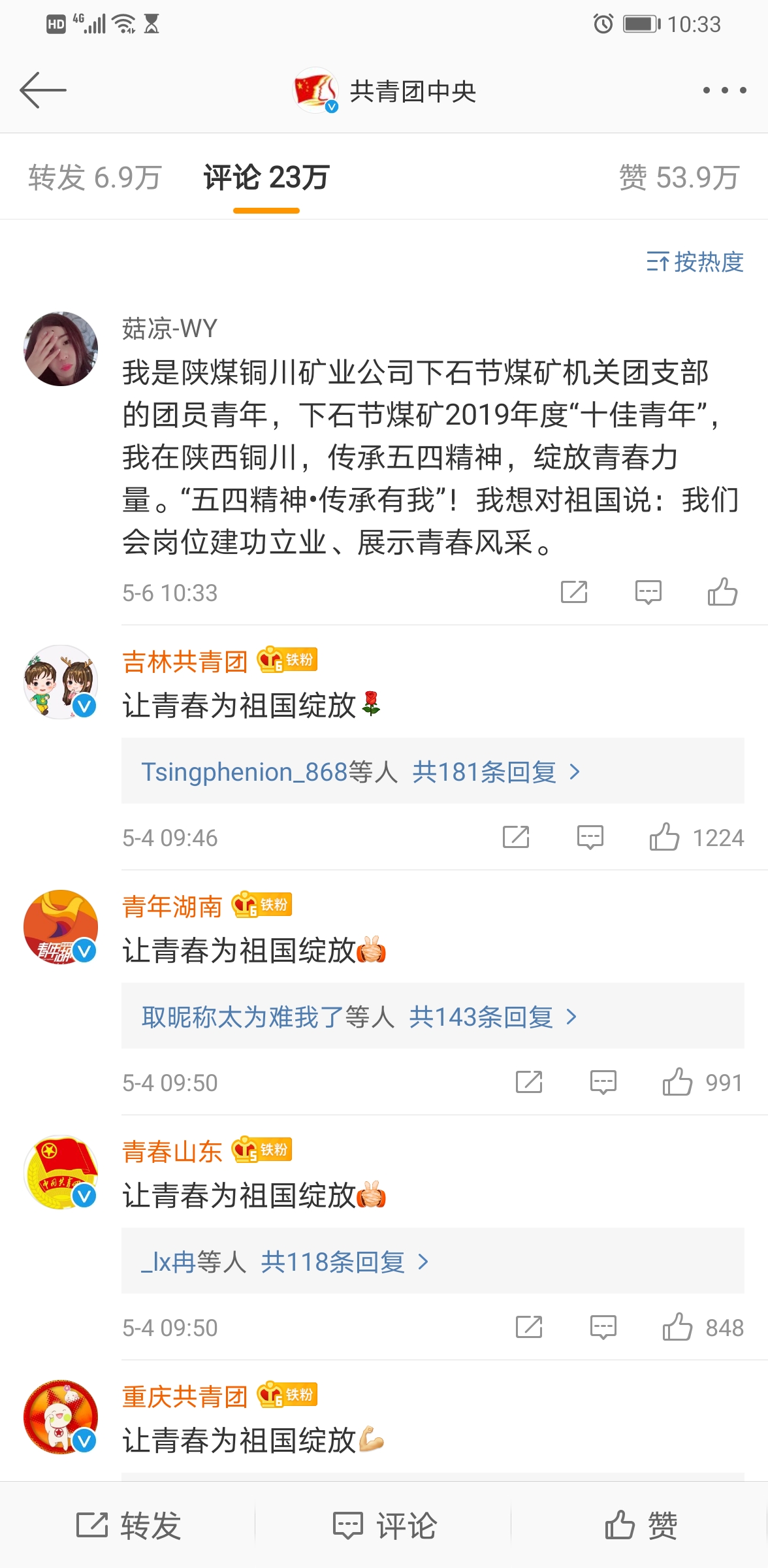 自4月27日公司紀(jì)念五四運(yùn)動(dòng)101周年表彰會(huì)暨團(tuán)員青年“六談”討論會(huì)召開(kāi)后,各級(jí)團(tuán)組織先后召開(kāi)會(huì)議表彰先進(jìn),選樹(shù)典型,組織團(tuán)員青年認(rèn)真學(xué)習(xí)習(xí)近平總書(shū)記的寄語(yǔ),通過(guò)緬懷了五四先驅(qū)崇高的愛(ài)國(guó)情懷和革命精神,號(hào)召團(tuán)員青年高舉“五四”旗幟,緊貼時(shí)代脈搏,貢獻(xiàn)青春力量,肩負(fù)起黨賦予的光榮職責(zé),團(tuán)結(jié)帶領(lǐng)廣大團(tuán)員青年為新時(shí)代黨和國(guó)家事業(yè)發(fā)展作出新的更大貢獻(xiàn),奮力書(shū)寫(xiě)推動(dòng)公司轉(zhuǎn)型升級(jí)、高質(zhì)量發(fā)展的嶄新青春篇章。