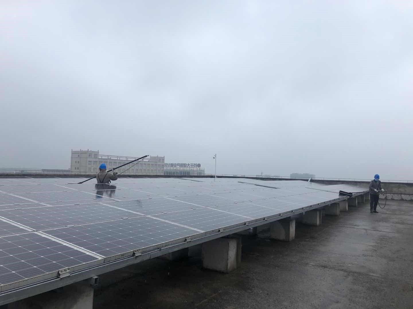 欣榮公司新區(qū)6MWp分布式光伏發(fā)電站,光伏板數(shù)量總計達20868塊,大都分布在屋頂。人工清掃難度大、工作量重。為安全、高效地完成光伏板清潔除塵任務(wù),公司根據(jù)現(xiàn)場實際情況,特制定清掃方案,并對團員青年清掃隊伍進行了風(fēng)險預(yù)控和安全技術(shù)交底工作,保證團員青年清掃隊伍的人身及設(shè)備安全。團員青年克服困難,認(rèn)真仔細并耐心清掃,在一次次揮汗下,歷時兩天共計清掃光伏板2000余塊,后續(xù)將加快清掃力度,保證完成光伏清掃工作。