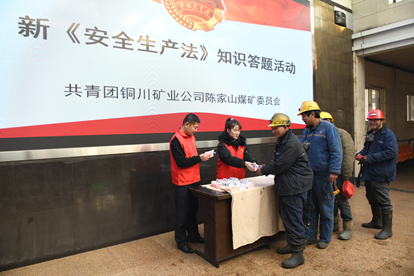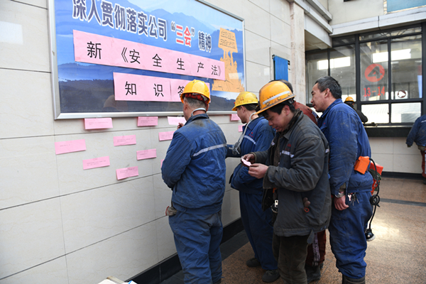 該礦團委將新《安全生產(chǎn)法》宣貫工作與礦井實際相結(jié)合,采取有獎競答的方式,讓廣大干部職工在寓教于樂中知法、學(xué)法、懂法、守法,進一步強化自身安全意識,用法律來規(guī)范自己的安全行為,答對的職工領(lǐng)上毛巾、香皂等紀念品,并叮囑堅守安全底線,上標(biāo)準崗,干標(biāo)準活,實現(xiàn)安全生產(chǎn)。同時,該礦各基層單位充分利用班前會、周五安全學(xué)習(xí)等時間,開展專題課堂,層層分解學(xué)習(xí)新《安全生產(chǎn)法》,進一步增強全員安全防范意識,營造“全員抓安全”的濃厚氛圍。