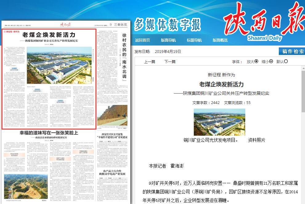 陜西日?qǐng)?bào):老煤企煥發(fā)新活力—陜煤集團(tuán)銅川礦業(yè)公司關(guān)井壓產(chǎn)轉(zhuǎn)型發(fā)展紀(jì)實(shí)